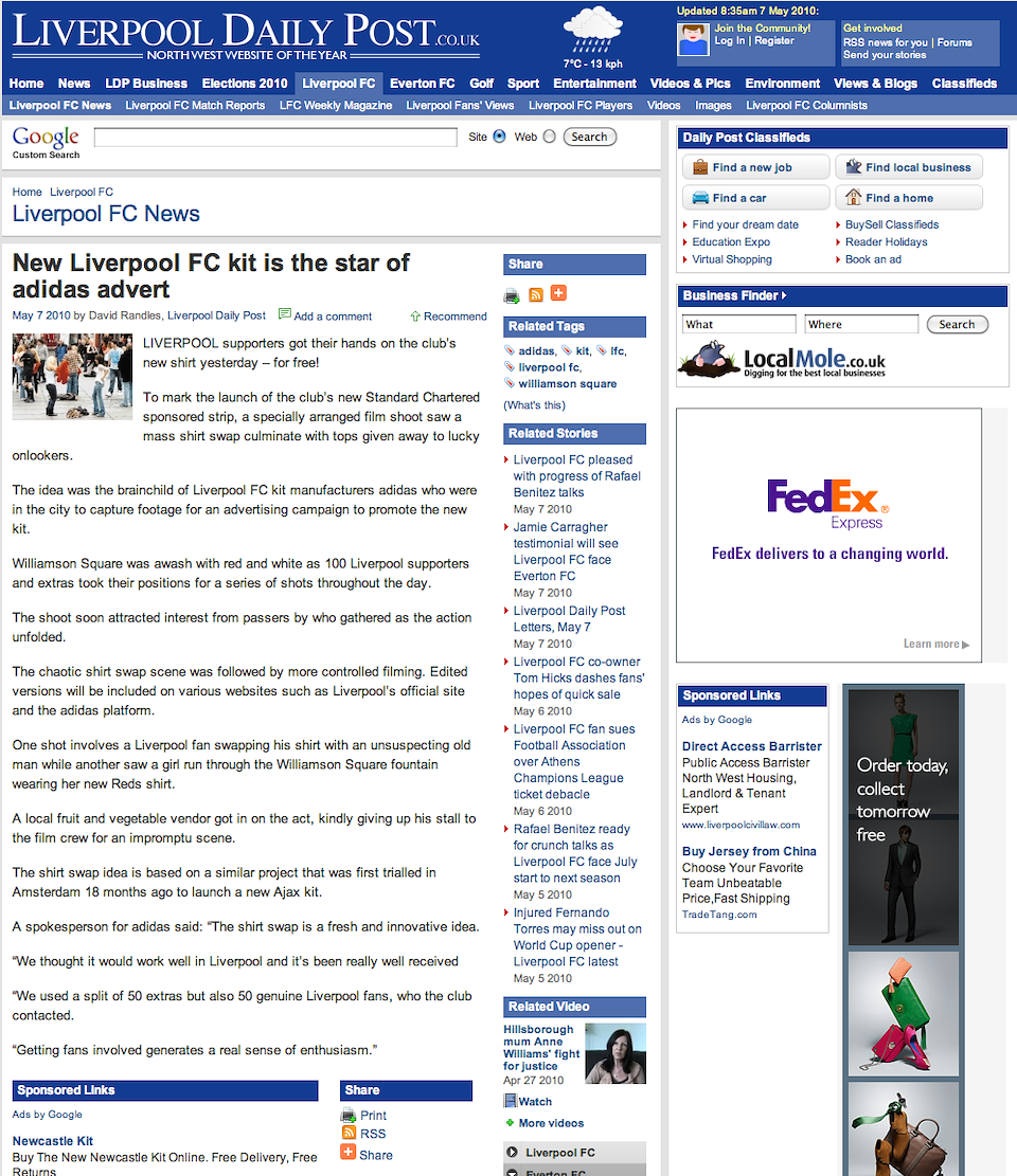 The launch of the new Liverpool FC kit was the perfect occasion to bring this insight to life, and to connect their fans with Adidas.