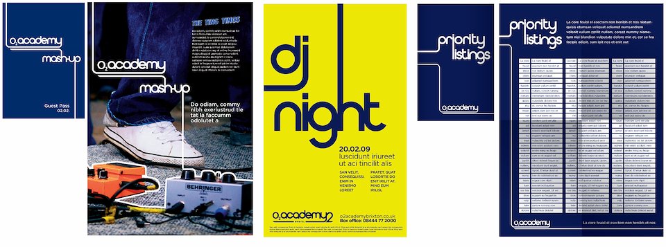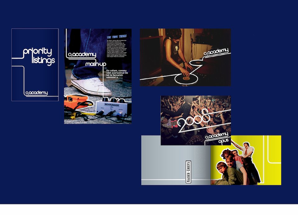 The O2 academy brand was born, working seamlessly on signage, tickets, interior design, staff clothing, corporate literature, online, and in press.