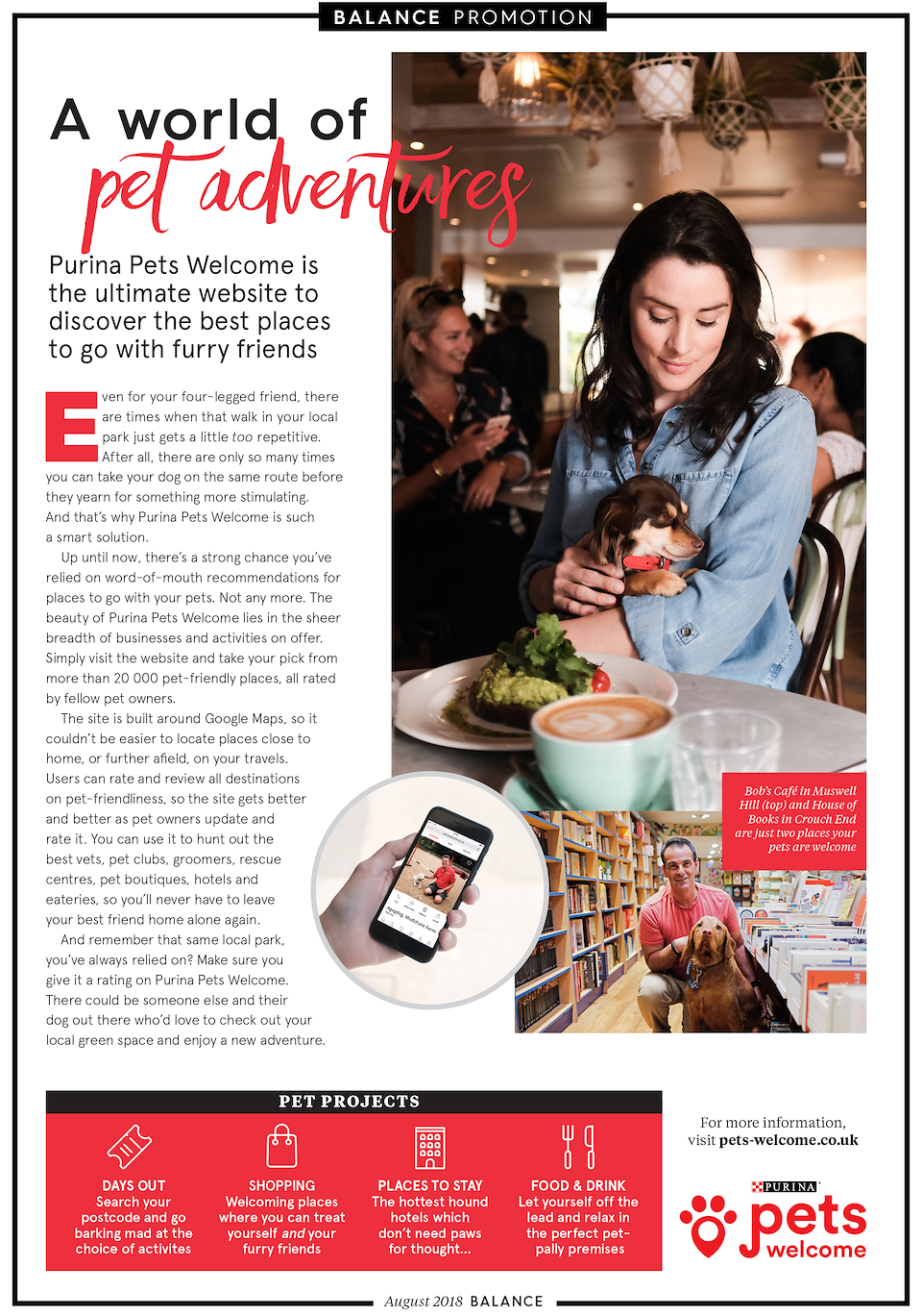 Pets Welcome is now the TripAdvisor for pets. Tasked with creating their app and website content, our idea opens up a new world of adventures for owners and their pets, breaking the monotony of the daily walk or visiting the same park over and over again. The website enables pet owners to identify pet friendly businesses, such as bars, restaurants, cinemas and cafes, through to pet services such as vets and groomers.